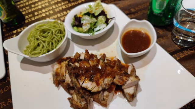 ごはんはグリルチキンを頼みました~。