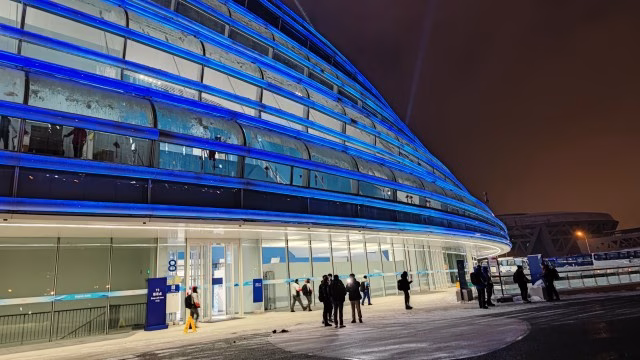 スピードスケート競技場は、北京のオリンピック公園内にある屋内競技場で、