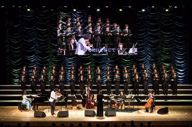 第3回目の2016年は、岩手県盛岡市。そして4回目となる今年は、3月29日に福島県郡山市で開催されました。出演は、バイオリニストの葉加瀬太郎さん、チェリストの柏木広樹さん、西村由紀江。合唱出演者として、福島県立郡山東高校、