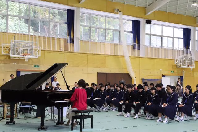 「スマイルピアノ500」という活動です。みなさんのご協力により、合計55台のピアノを届けることができました。ピアノをお譲り頂いた皆さん、ありがとうございます。今回は、福島県の「いわき市立豊間中学校」に