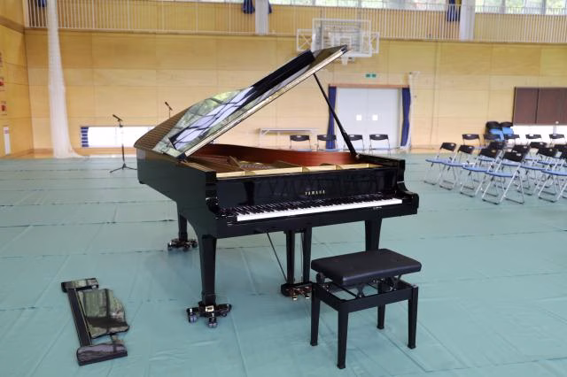 今回は学校ということで体育館で弾き初めをすることに!