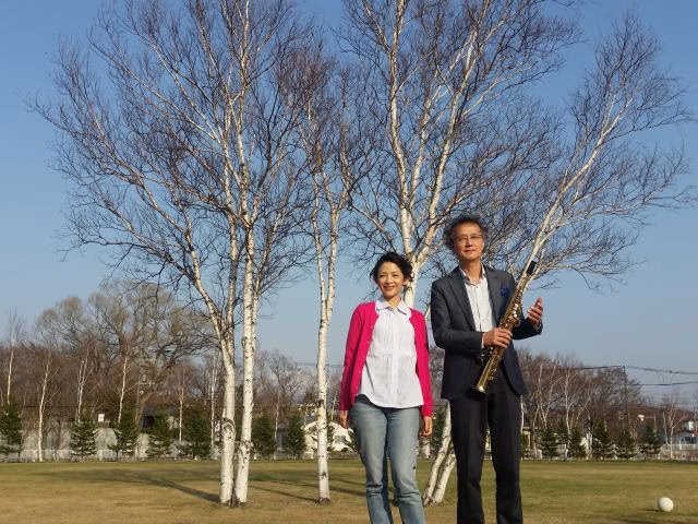 サックス奏者の三四朗さんとのアンサンブル。お客さんの中には、札幌や東京からも駆けつけてくれていて、