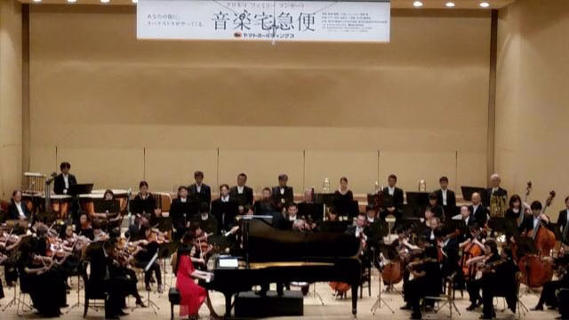 東京交響楽団の正指揮者を務める、飯森範親さん。映画「のだめカンタービレ」で指揮の指導をした方。そんな本格的なクラシックコンサートで私は、オリジナル曲「希望」とハチャトゥリアン作曲「剣の舞」をオーケストラと演奏。他に「ぼくもわたしもクロネコ音楽隊!」というコーナーでは、