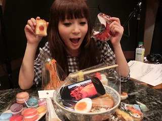 食品サンプルの話。 ゲストは浅草にある食品サンプルの老舗 『株式会社まいづる』の川嶋美津恵さんでした。今回持ってきていただいた食品サンプルの数々。 なんと川嶋さんからしょこたんへプレゼント! しょこたんの顔がこの一番の最高の表情に!! そんなに甘やかさないでいいんですよ・・・ でも川嶋さん、ありがとうございました!