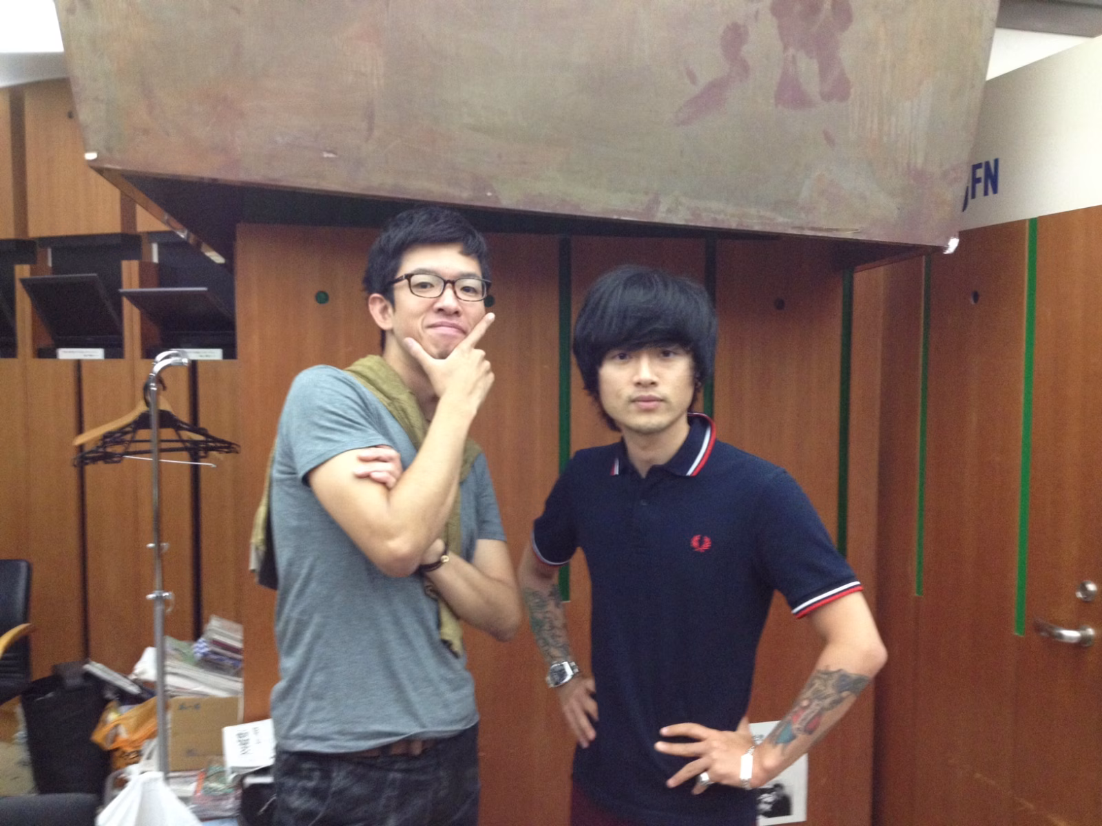 お城談義に花を咲かす(?)中島卓偉さんと井門さん 放送前の打合せ中も、話題が途切れることなくおしゃべりに興じていました。