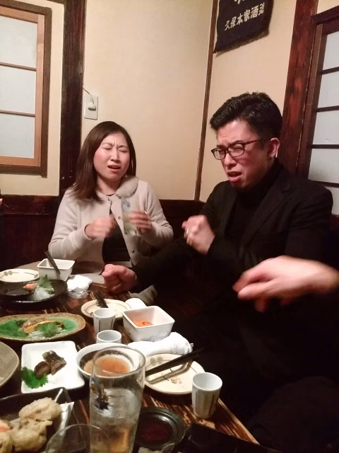 打ち上げの席で「ロシアンたこ焼き」に当たり、悶絶するふくしまFM安田アナと井門さん