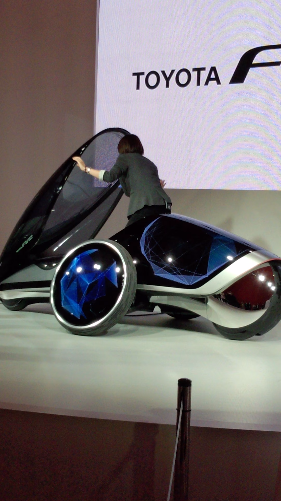 これが噂のFV2。体重移動で動くんだとか。 ちょっとお尻がかゆくて、うっかり体重移動をしてしまった場合、どうなるのでしょうか?まっ、トヨタさんだから、そんなの杞憂なんでしょう!