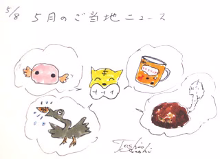 【全国から届いた!5月のご当地NEWS】☆・あのコーヒーショップが鳥取県に遂にオープン☆・独身女性のために。新潟県「出逢いの農業体験」☆・愛媛県で用水路からウーパールーパー☆・千葉県でシカのふんから新種のキノコ発見☆ http://www2.chiba-muse.or.jp/index.php?page_id=787・岐阜県「小瀬鵜飼」がいよいよ開幕☆・宮城県「マリンピア松島水族館」88年の歴史に幕☆ http://www.marinepia.co.jp/5月、アナタの街では何があるのでしょう☆遠出もいいけど、地元もね☆ さあ、今週も終わり☆また来週月曜日に☆みなさん、良い週末を☆またね☆