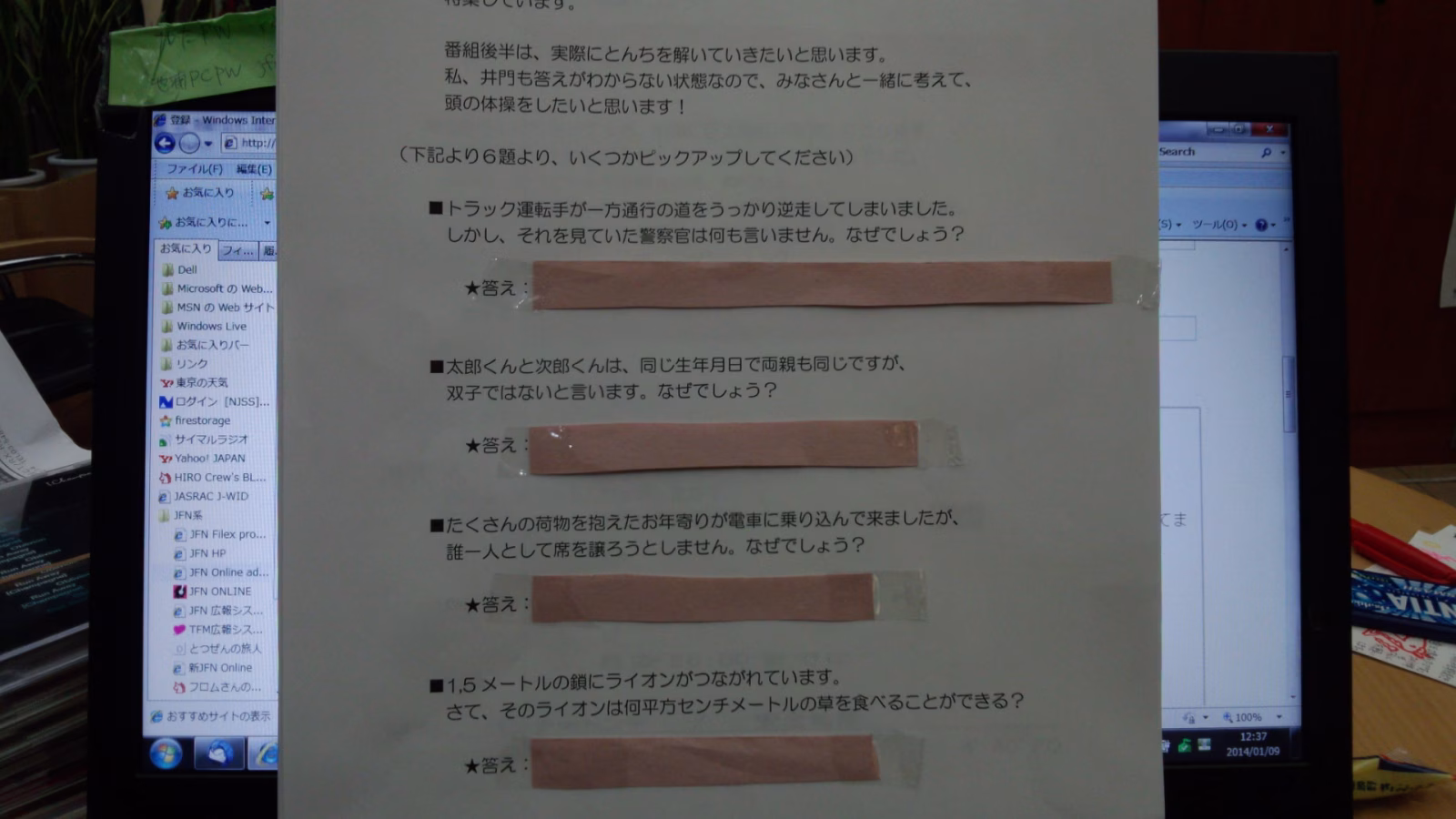 本日、1月9日は「いち」と「きゅう」で…一休=とんちの日なんです!というわけで、今日はとんちあれこれと題し、特集しました。番組後半では、実際に出題してみましたが、皆さんは解けましたか? 井門さんは当然、事前に原稿をチェックできるので、フライングして必死に考えてましたね。ちなみにスタッフは、全然解けませんでした。。※井門さんの原稿の答えの部分はしっかり伏せられてます(手作り感満載)M1. Run Away / Champagne M2. ゴールデンクイズ / スムルース M3. トンチ∞パンチ / 安全地帯