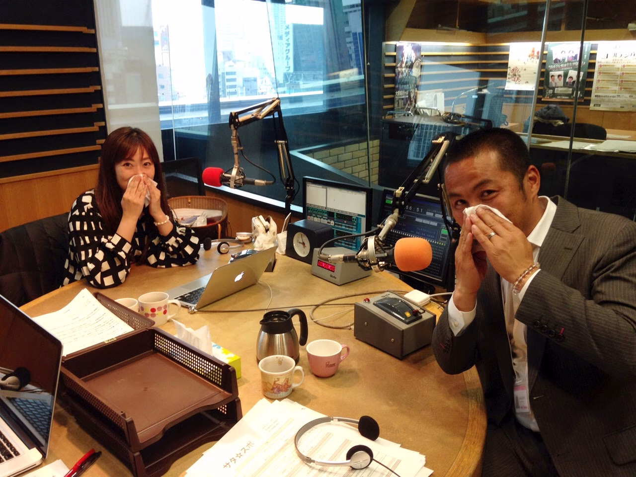 3月19日今日は、元プロサッカー選手の 森島寛晃&珠久美穂子コンビで お送りしました〜!大阪は、あいにくのお天気でしたが それでも「花粉症」のおふたりは辛そう・・・!ティッシュをスタンバイして 準備万端でお送りしました◎皆さんもこの時期のスポーツ、 スポーツ観戦が辛いんです! という方も多いのでは?週のサタスポも、 モリシこと、元プロサッカー選手 森島寛晃さん&珠久美穂子コンビでお送りします。質問、メッセージは随時受付中です★