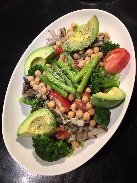 休日のブランチに、イタリアンを作って、堪能しました。トマト、ブロッコリー、ひよこ豆、アボカド、