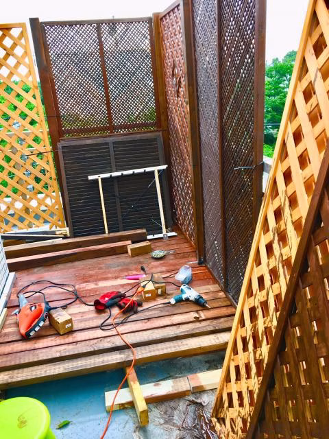 ベランダでのウッドデッキ作りも一時中断…