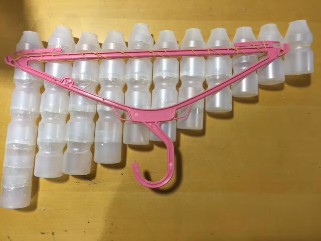 ハンガーに音階順に括り(くくり)付けて完成です。
