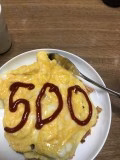 500回記念ってことで……、オムライスにケチャップで500って書きました。