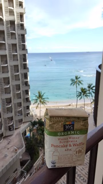 ハワイのお土産を買ってきてくれました〜!!ホールフーズで買ったオーガニックのパンケーキミックスをプレゼント!