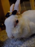 飼っているうさぎトコちゃんです^ ^お耳にリボンをつけて、キティちゃんになってみました!どう?似合う〜?