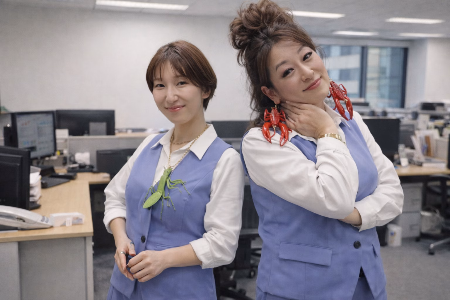 スギシャマ今日の一言「ザリガニピアスとカマキリネックレス♪」