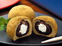 しっとりやわらかいほうじ茶の餅でくるみ、香ばしいほうじ茶粉をたっぷりまぶした大人の大福です。