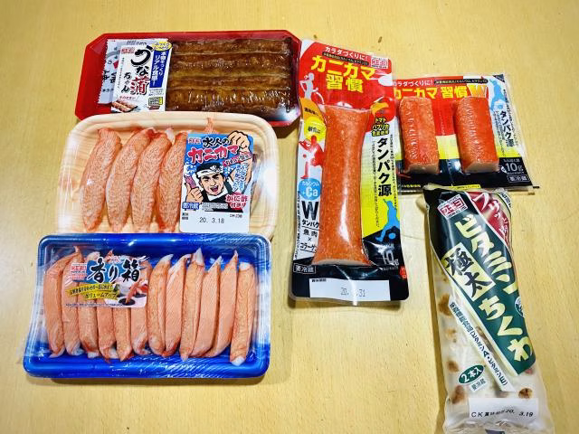 今回もとても素敵なカニカマ姿でご登場です!さてさて、今回も沢山のスギヨ商品をお持ちいただきました♪