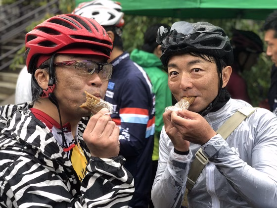 最後のエイド・ステーションでは、地元の方たちが餅つきを開催。 もちろん野島さんもつかせてもらいました!そしてつきたてのお餅はすぐにその場で、あんことくるみで味付けしていただきます! 自分でついたお餅を、その場で食べる…その美味しさは、表現できません。ひとつ言えることは、ずっと食べているのに、野島さん、おかわりしてました!