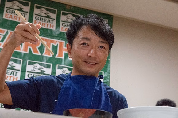 さらに、「岩手の名物と言えばこれ!」ということで、「わんこそば」の早食いコンテストを実施。ここで一般参加者に混じって、野島&伊藤チームも急遽参戦。1分間でわんこそばを何杯食べられるかに挑戦しました。