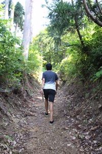 崩れた山肌に覗く赤土。