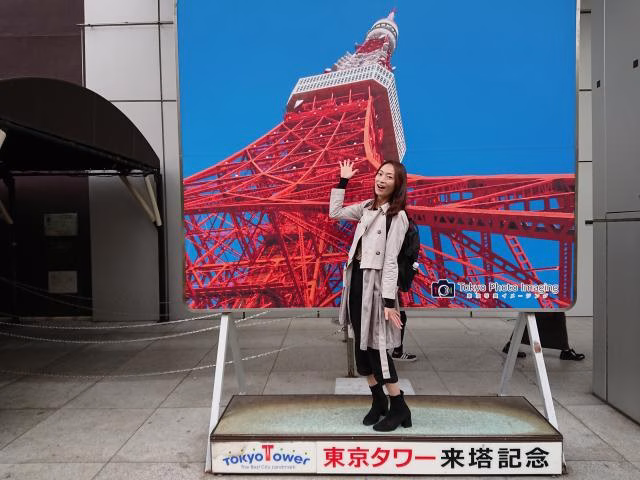 歌手になったきっかけとなったオーディションを受けに母と上京し、オーディション帰りにせっかくだから観光しようということになり、二人で東京観光はとバスの旅を急遽敢行したのですが、、、そこで初めて訪れた東京タワーは当時も大人気で、まず入り口に入ることさえ出来ないほどの人だかり。当然長蛇の列で数時間待ち。バスの集合時間に間に合わず残念ながら、東京タワーを下から写したパネルと記念撮影をして泣く泣く後にしたのでした。