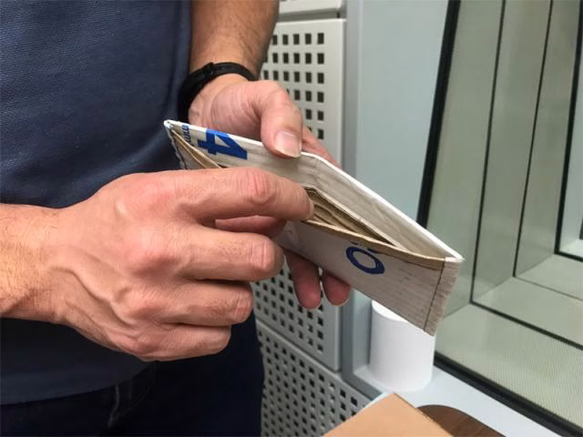 お聴き逃しなく!蒲田健自作ダンボール財布↓