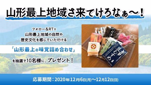 フォロー&リツイートしてくれた方の中から抽選で10名様に、山形最上地域の自然や歴史文化を感じていただける「山形最上の味覚詰め合わせ」をプレゼント!