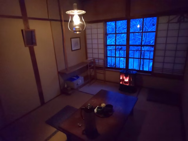 ・夜の館内はランプの灯りのみで、冬場の客室は石油ストーブの明かりが加わるそう。