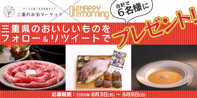 「OH! HAPPY MORNING」の公式Twitterをフォロー&リツイートしてくれた方の中から抽選で合計6名様に、三重県の特産品が当たる!