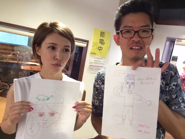 連休明けの火曜日でございました。 夏休み中という方や、海の日明けで、お疲れの方も多かったのではないでしょうか。 そんな火曜日、森藤さんの絵の評価が低いという話題に!! そして、放送後に井門さんが描いた森藤さんの似顔絵! これがうまくてビックリしちゃいました☆暑い日が続いていますが、体調管理に気をつけて、 夏の思い出たくさん作っていきましょうね♪♪ そして、ハピモニはいつでも皆さまからのメッセージ、お待ちしています♪♪メッセージには住所・氏名を忘れずに明記の上、 メールはメールフォームから(スマホからでもOK!) →http://site.jfn.co.jp/oh/mailform/79 FAXは03-3288-8955からお送りください♪♪ 携帯から送る人は絵文字&カナ小文字禁止よ♪♪文字化けしちゃうからね♪♪ メッセージはtwitter(#hapimoni)でも受け付けてます♪♪