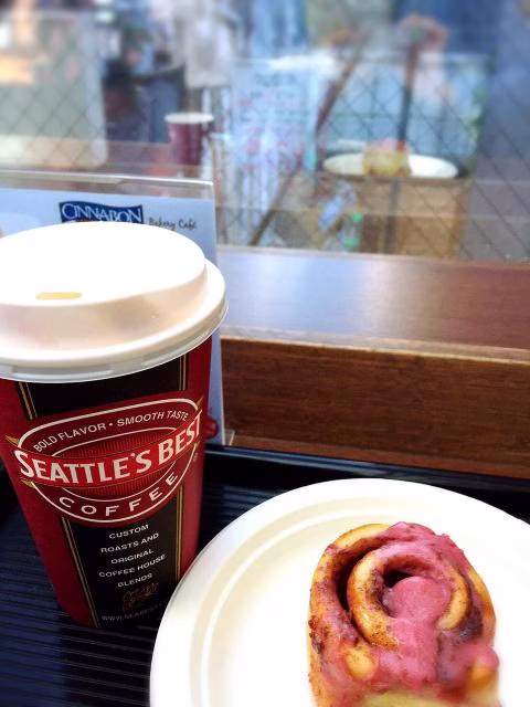 写真はそんな先生とも食べたシナモンロールを寄り道して食べたときのひとコマです!