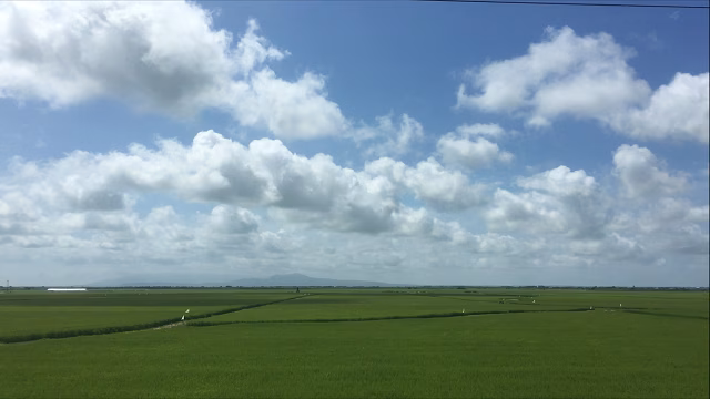 田んぼの緑、空の青、雲の白。東北の夏は本当に輝いています。