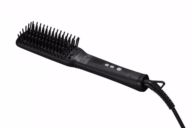 ブラシ形のストレートアイロン。忙しい朝のスタイリングがこれ1本で完了!