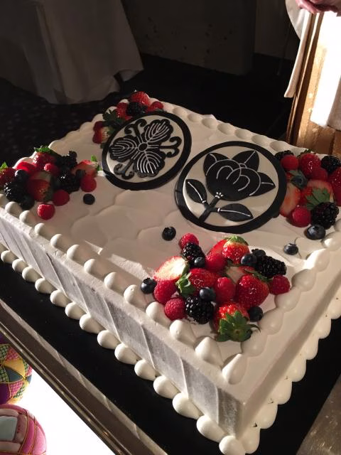 ケーキは、家紋が彫ってあり、