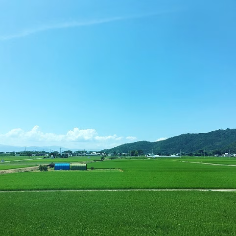 米原を抜け、滋賀の田園風景の中を新快速は走ります。