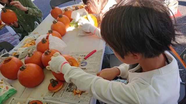 先週末は次男坊と一緒にパンプキンカービングへ行ってきました。