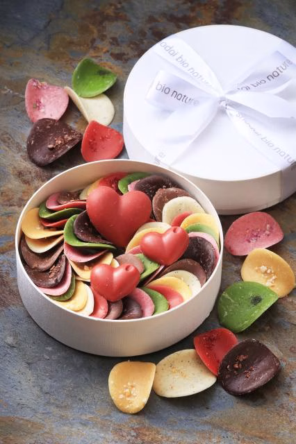 ・ピンク色はベリー、グリーンは抹茶、黄色はマンゴーなど、あくまでも素材から生まれたもの。(フェアトレードとは、発展途上国で作られた作物や製品を適正な価格で継続的に取引することによって、生産者の持続的な生活向上を支える仕組み)※通販あります。