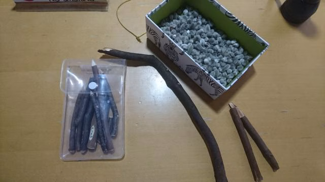 そして、落ち葉はいくらでも拾って良いので、落ち葉で遊んでみてください♪今日、岩谷さんが持ってきてくださったアレコレをご紹介します!①アオダモの枝で蛍光ペン