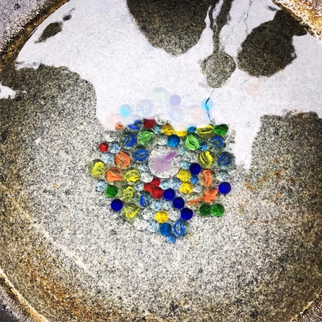 水をはったその中に、綺麗なビー玉?おはじき?のようなものが。