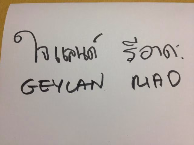 どう書くんですか〜?と伺ったところ、教えてくれました。こちらがタイ語表記のリアド慈英蘭です!