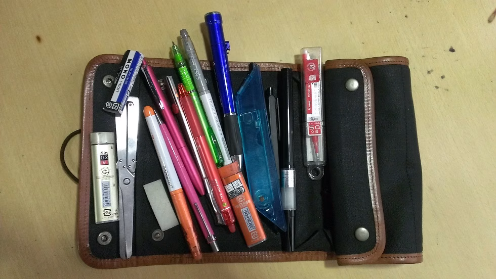 ●きだてさんは、元から文房具が好きだったのか? →小学校から文房具に頼り切って生きてきたきだてさん。 その姿勢は大人になっても変わらず、より良い文房具を追及しているとのこと。●「ブング・ジャム」とは? →きだて たく、高畑正幸、他故 壁氏の三名で構成される、文房具の啓蒙を主眼としたトークユニット! 3時間の文房具トークもやっちゃいます。 3人は、ラジオが大好き!嬉しいですね!●文具好きのみなさんが集まって作られた、この『筆箱採集帳』とはどんな本? →筆箱は持つ人の仕事や個性が凝縮されていて、非常におもしろいもの。 いろんな職業の方の筆箱の中身を、昆虫採集のように集め、特集したものがこの『筆箱採集帳』!●きだてさんは、手元に文房具がないと不安なほど筆箱・文房具が大好き。 今日もスタジオに自身の大きな筆箱を持っていただきました。 そこには、折りたたみの三角定規やなんと爪切りになるボールペンが!!! さらに、スマホのストラップ部分にも文房具をつけておられた、きだてさん。 文房具にに対する並々ならぬ情熱を感じました!※写真は、きだてさんの筆箱の中身!