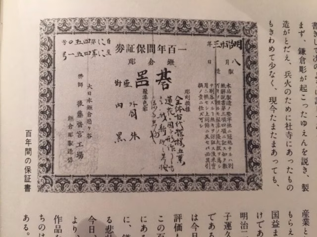 今日教えていただいたノートにメモしたくなる情報は、 鎌倉彫りについてのお話!ご友人が鎌倉の小町通りで鎌倉彫りの工房をされています。 鎌倉彫りとは桂などの木に彫刻を施して、 上から漆を塗り、3ヶ月ほど寝かせるもの。パリ万博の頃、日本の工芸品が出品され、 そんな鎌倉彫りも出品されたのですが、 その中の碁石入れに、なんと100年保証書がついていたのだそうです。100年…なんという悠久の、というには少し大袈裟かもしれませんが、 それにしてもスケールの大きい保証期間ですね。【More Information】