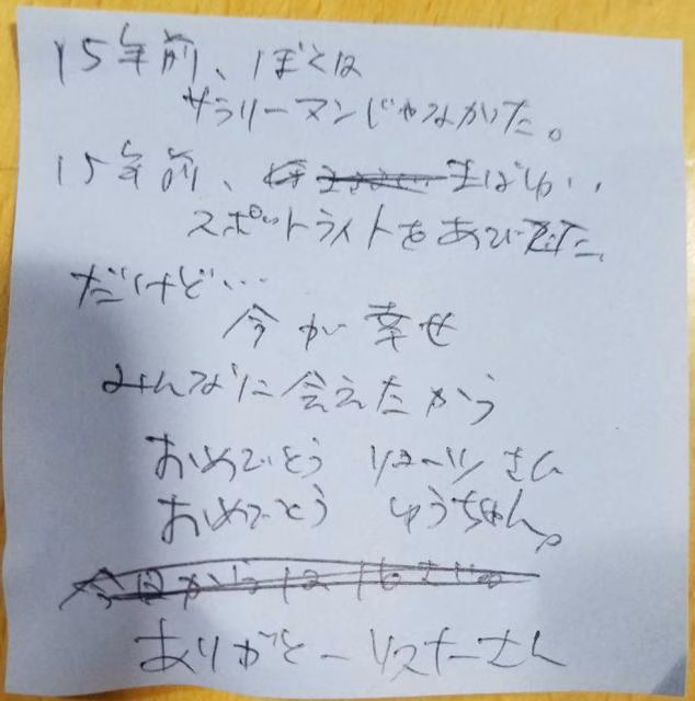 番組で一番最初に結婚報告してくれた藤井悠さんの結婚を祝して、リョーツさんとフライデーゴーズオンのスタッフ(プロデューサー、ディレクター、作家、AD)のみんなで藤