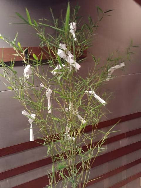 お願い事は笹に結び付けました!