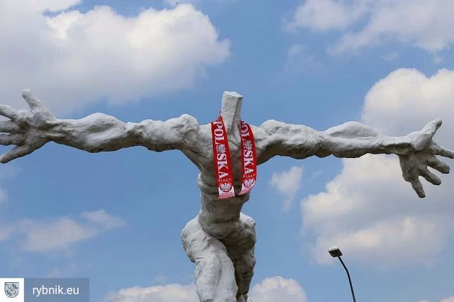 そして、ポーランド在住の日本人女性、藤森順子さんにも電話でお話を伺いました!藤森順子さんのご主人、彫刻家のトマシュ・コツランガさんの作品がポーランドのリブニックという街のロータリーに設置されてる大型作品が、ポーランド代表チーム応援ヴァージョンになっています