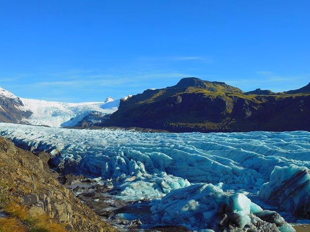 4日目にしてようやく天気が回復!晴天のアイスランドの景色は素晴らしく、氷河が、とても美しかったです。