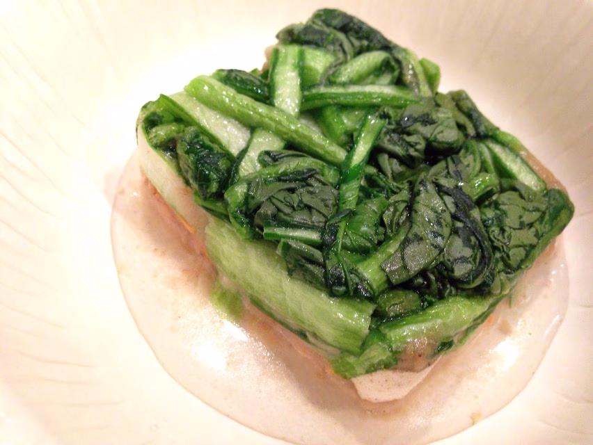 「アマノフーズ」フリーズドライ食品、火星メシの試作品! 小松菜の胡麻和え。 お湯をいれた瞬間。BY むらかみ