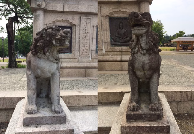 仙台で見つけた、珍しい性別がある狛犬。BY村上